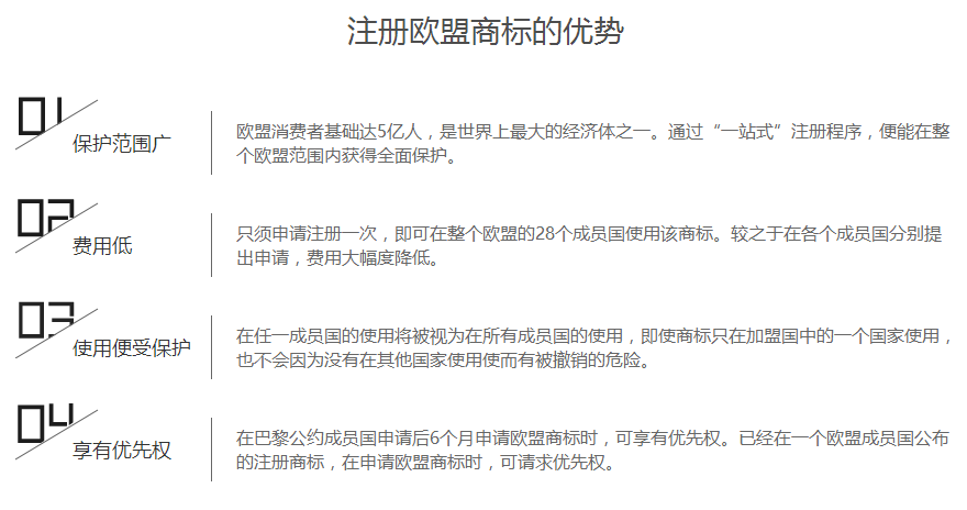 A:欧盟商标申请有28个成员国,其主要的风险在于欧盟商标在先申请人的异议风险及成员国的在先商标申请的异议风险。如商标并非模仿他人商标,在欧盟授权概率很大。
